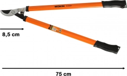 Takket være de ergonomiske gummihåndtag ligger værktøjet sikkert i hånden og minimerer træthed ved længerevarende arbejde. Den samlede længde på 750 mm gør det muligt at nå vanskeligere områder og giver bedre kontrol over klippet.
