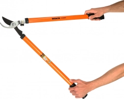 Den samlede længde på 750 mm gør det lettere at klippe kraftigere grene og arbejde i højden uden stige.