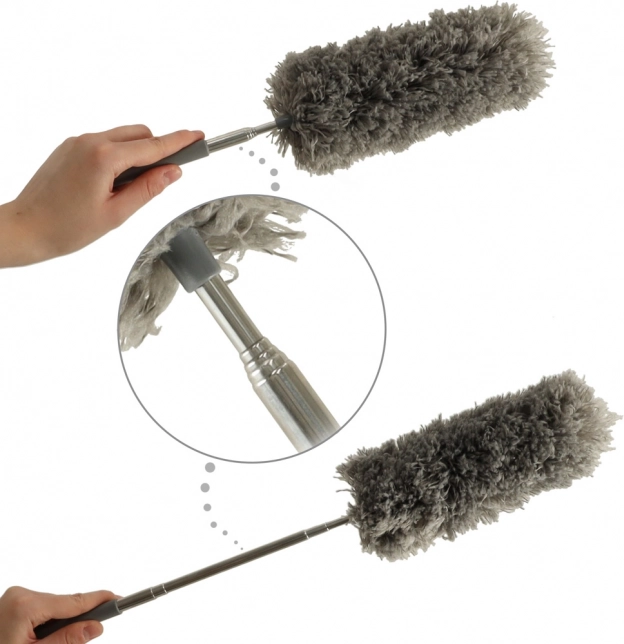 Takket være det fine mikrofiber samler og fanger støvekosten effektivt støv uden at skade overflader. Den er ideel til rengøring af lofter, møbler, persienner eller lysekroner.