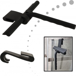 En silikonekrog gør det nemt og praktisk at opbevare vinduesvaskeren direkte på brusekabinen.