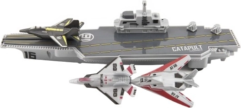 Sættet indeholder tre modeller af jagerfly, som børnene kan placere på dækket eller katapultere.