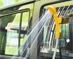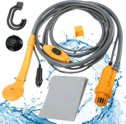 Denne transportable rejsebruser drives fra et standard 12V bilstik, så du nemt kan bruge den i bil, autocamper, på båd eller på en grund med adgang til batteri. Takket være den lange strømledning og slange er håndteringen bekvem og vasken hurtig.