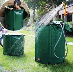 Sænk blot pumpen ned i en beholder med vand og nyd en forfriskende bruser langt fra civilisationen.