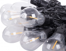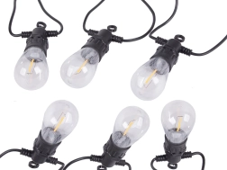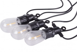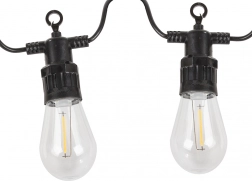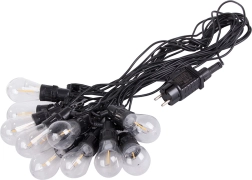 Denne udendørs LED-guirlande er ideel til både hverdagshygge og festlige stunder. De transparente pæreskærme i Edison-design giver et behageligt varmt skær og skaber hyggelig, ambient belysning. Takket være IP44-kapsling er den velegnet til udendørs brug hele sæsonen.
