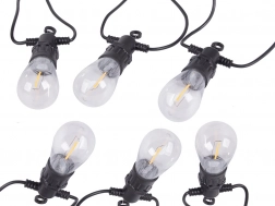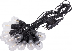 Kæden afsluttes med en tæt skrueforbindelse, så du nemt kan forbinde flere lyskæder og tilpasse længden efter behov. De gennemsigtige pæreskærme er fremstillet af robust plast, som er let og praktisk til hyppig flytning og sæsonbrug.