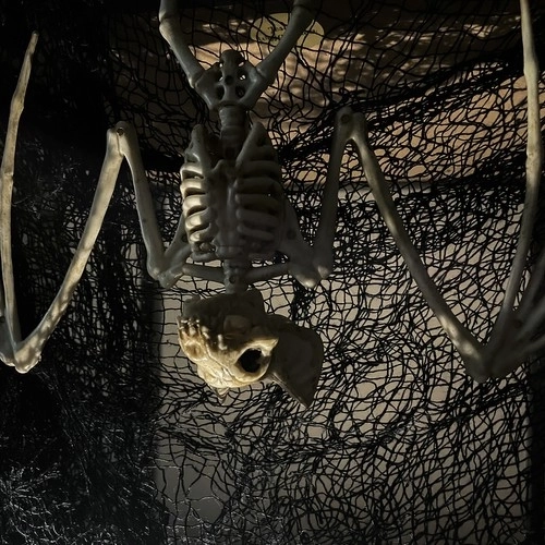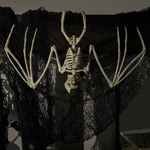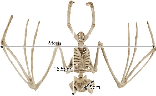 Denne dekorative flagermus-skelet i en naturlig “knoglefarve” giver straks rummet en kold og uhyggelig atmosfære. Den er let, nem at hænge op og tiltrækker opmærksomhed takket være det realistiske udførsel og de bevægelige elementer.