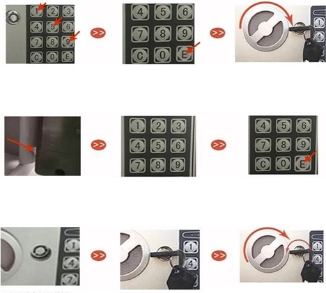 Programmerbar 3–8-cifret kode for hurtig åbning samt mekanisk nødnøgle, når det er nødvendigt. Efter tre forkerte forsøg låser pengeskabet i 30 sekunder og giver besked med lys og lyd.