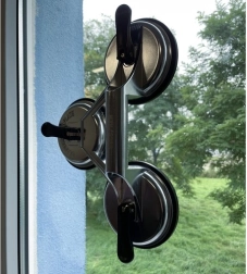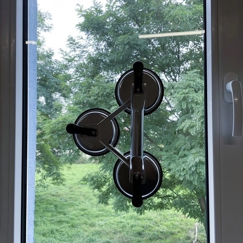 Tre store sugekopper fordeler belastningen og muliggør håndtering af tunge og skrøbelige paneler uden risiko for skader.