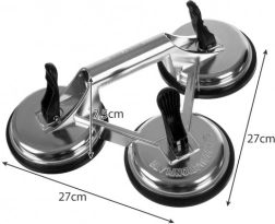 Denne robuste tredobbelte aluminiumsugekop fra BIGSTREN er det ideelle valg for montører, glarmestre og gør-det-selv-folk. Tre store gummisugekopper på 120 mm med mekanisk løftearms-tryk giver et stærkt og stabilt greb på glatte og ikke-porøse overflader som glas, metal, glaserede fliser eller lakeret træ.