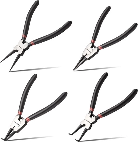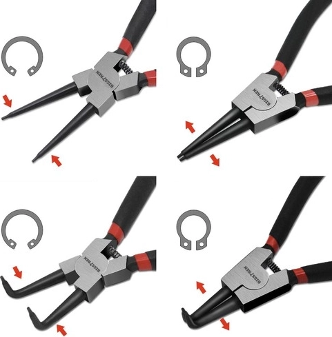 To lige og to bøjede værktøjer dækker de fleste anvendelser med både indvendige og udvendige låseringe.
