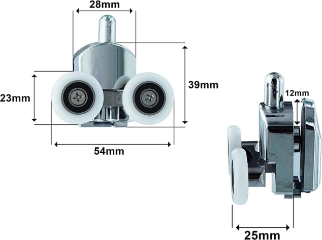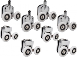 Fremstillet af holdbar plast og stål, er rullerne korrosionsbestandige og egnet til glas af 4-6 mm tykkelse. De er universelle og lette at installere, hvilket gør dem passende for de fleste almindelige brusekabiner.