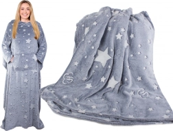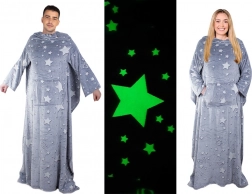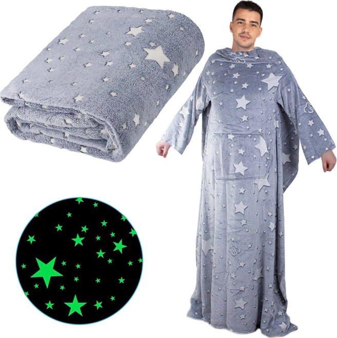 Designet med rymlige ærmer, der giver dig bevægelsesfrihed, glider plaidet ikke ned på gulvet som almindelige plaider. Derudover sørger dets fluorescerende egenskaber for, at det skinner i mørke – ideelt til en unik stemning derhjemme.