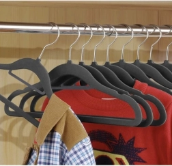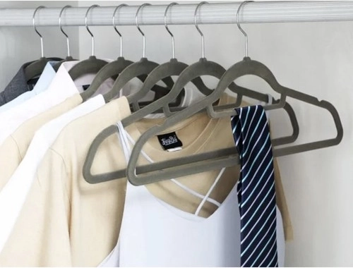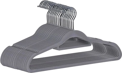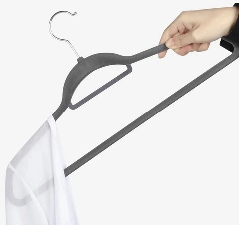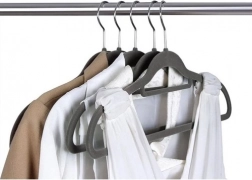 Hver bøjle er dækket med fint velourmateriale, der forhindrer tøjet i at glide.