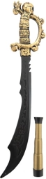Dette piratsæt giver enhver lille eventyrer mod og fantasi. Hovedattraktionen er et let og sikkert plastikblad på 58 cm med et dekorativt greb, der ligger godt i hånden. Sammen med tilbehøret skaber det et autentisk piratlook til rolleleg, kostumer og temafester.