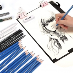 Dette alsidige 32-dels tegnesæt kombinerer blyanter i forskellige hårdheder (B, HB, H), kul i træ og som stave samt grafitstave, så du kan opnå fine linjer, dybe skygger og glidende tonale overgange. Alt er pænt organiseret i et robust lynlåsetui med håndstrop, der beskytter værktøjerne og gør transporten let.