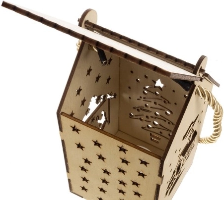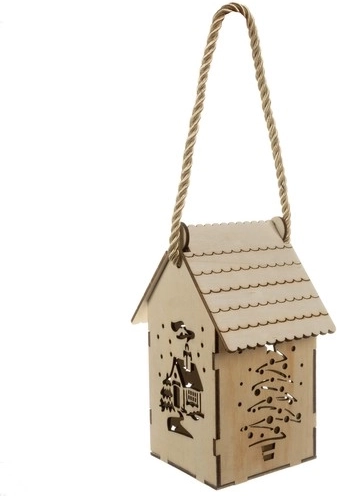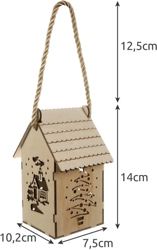 Hele konstruktionen er af naturtræ, hvilket giver lygten et varmt og rustikt udseende. Takket være det stærke dekorative reb kan lygten nemt gribes eller hænges op hvor som helst i hjemmet som julepynt.