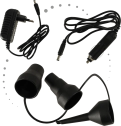 Kan tilsluttes både til hjemmevægudtag 240V og bilcigarettænder 12V, hvilket sikrer fleksibilitet i brugen.