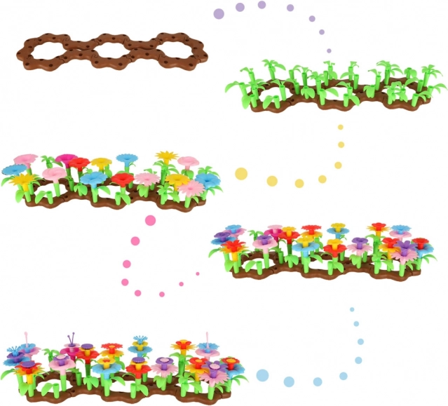Dette farverige byggesæt indeholder 104 dele, som muliggør fri kreativitet til at skabe smukke blomsterkombinationer. Børn vil have mulighed for at have det sjovt, mens de udvikler kreativitet, finmotoriske færdigheder og hånd-øje-koordination.