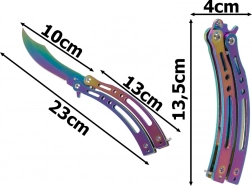 Sommerfuglekniven har en fantastisk iriserende overflade, der straks fanger opmærksomheden. Takket være kvalitets metalforarbejdning er den ikke kun ideel til æstetisk nydelse, men også til praktisk brug. En sikkerhedslås sikrer sikker bæring og håndtering.