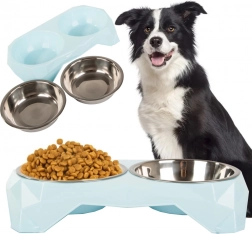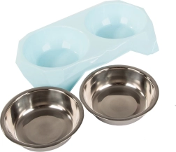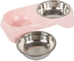Dobbelt skål til hunde og katte tilbyder en bekvem løsning til fodring af dit kæledyr. Med aftagelige stålskåle er vedligeholdelse nem, og plastkonstruktionen giver stabilitet.