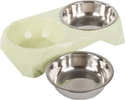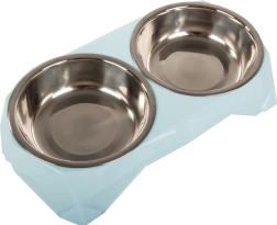 Denne dobbelte skål er det ideelle valg for kæledyrsejere, der søger en effektiv og nem måde at servere mad eller vand. Med et volumen på 350 ml pr. skål giver den tilstrækkelig kapacitet.