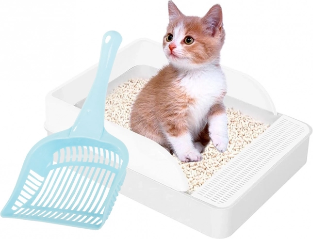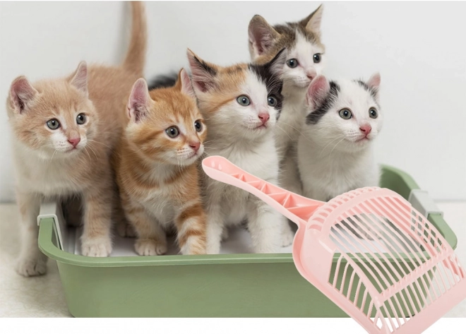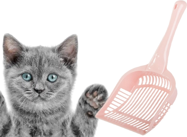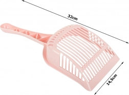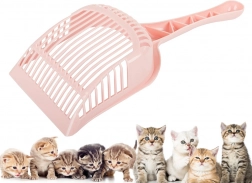 En enkelt størrelse egner sig til alle typer af katte toiletter. Skovlen adskiller effektivt afføring fra grus med sine fine åbninger.