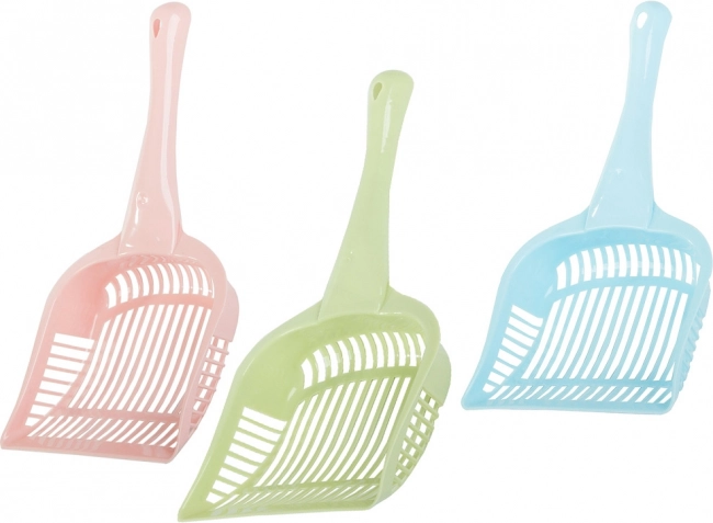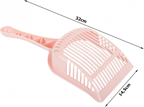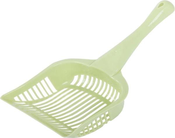 Denne plastskovl til kattegrus er en fremragende hjælper til daglig vedligehold af katte toilettet. Den er udstyret med et ergonomisk håndtag for komfortabelt greb og let håndtering. Med sin robuste konstruktion sikrer den effektiv og nem rengøring.
