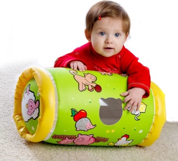 En sjov og sikker oppustelig rulle til de mindste, der støtter krybning, stabilitet og de første forsøg på at rejse sig. Indeni er der tre klokker, som ringer blidt ved bevægelse og motiverer barnet til aktivitet. Produktet er ftalatfrit og certificeret, egnet fra 6 måneder.