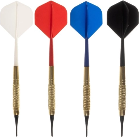Sættet indeholder 12 pile med fjer i 4 farver og 200 bløde spidser for nem udskiftning.