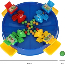 Oplev enestående sjov med hoppefrøer, hvor hele familien deltager. Dette spil er designet til 2 til 4 spillere, der konkurrerer om at fange så mange kugler som muligt med de farvede frøer placeret omkring dammen. Sjov begynder, når du hælder kuglerne i midten af spillet, og frøernes gribe-mekanik trækker spillerne ind i spillet.