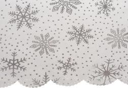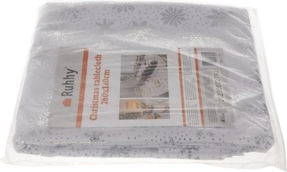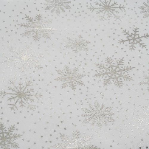 Dugen er lavet af høj kvalitet polyester og har en smuk hvid-sølv farvetone. Takket være muligheden for vask er denne dug let at vedligeholde og velegnet til gentagen brug under årlige festligheder.