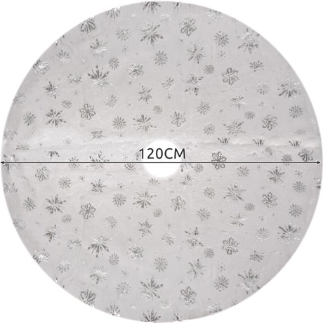 Takket være sin størrelse på 120 cm giver skørtet rigelig plads til at skjule stativet og arrangere gaver under juletræet. Fremstillet af kvalitetstekstilmateriale, tilbyder blødhed og komfort, mens de sølvfarvede snefnug giver en festlig glans.