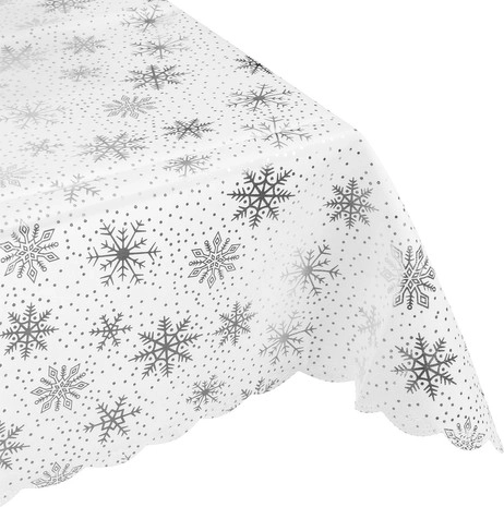 Denne juledug er det perfekte supplement til dit festlige bord. Med sit design, dekoreret med sølv snefnug og prikker, giver den bordet et dekorativt udseende og beskytter det mod skader og pletter under festlige middage. Dugen er lavet af polyester, er nem at vedligeholde og kan vaskes, så du kan bruge den igen år efter år.