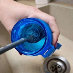 Ideel til rengøring af flasker, glas og andre smalle beholdere. Den fleksible konstruktion tilpasser sig forskellige former og størrelser.