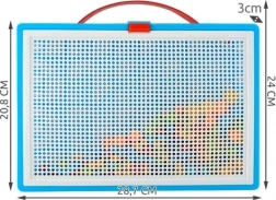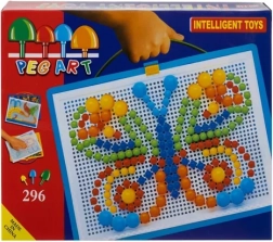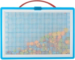 Denne kreative mosaik med svampe åbner en farverig verden af skabelse for børn. Af de farvede pløkker opstår let sommerfugle, blomster eller helt egne originale mønstre. Sættet i den praktiske kuffert gør det nemt at transportere og opbevare alle dele, så intet bliver væk, og legen kan begynde når som helst og hvor som helst.