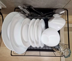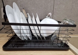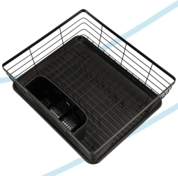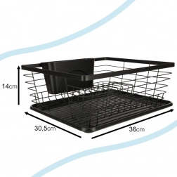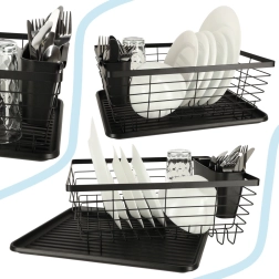 Hold orden ved vasken med et opvaskestativ i elegant sort. Med gennemtænkt inddeling i riller til tallerkener, plads til skåle og glas samt en separat bestikholder tørrer du hverdagens service hurtigt og hygiejnisk. Drypbakken opfanger vandet og beskytter bordpladen mod sprøjt.