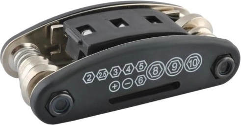 Det kompakte cykelnøglesæt 16i1 er enhver cyklists uundværlige værktøj. Hele sættet er foldet som en lommekniv. De små mål gør det let at have med sig i cykeltasken, rygsækken eller lommen. Sættet indeholder det mest nødvendige værktøj til hurtige og individuelle cykelreparationer. Med dette sæt kan du trygt tage på lange ture.