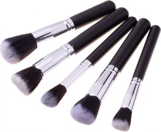 Sættet indeholder forskellige typer børster, der imødekommer behovene for kompakte såvel som flydende eller cremede produkter.