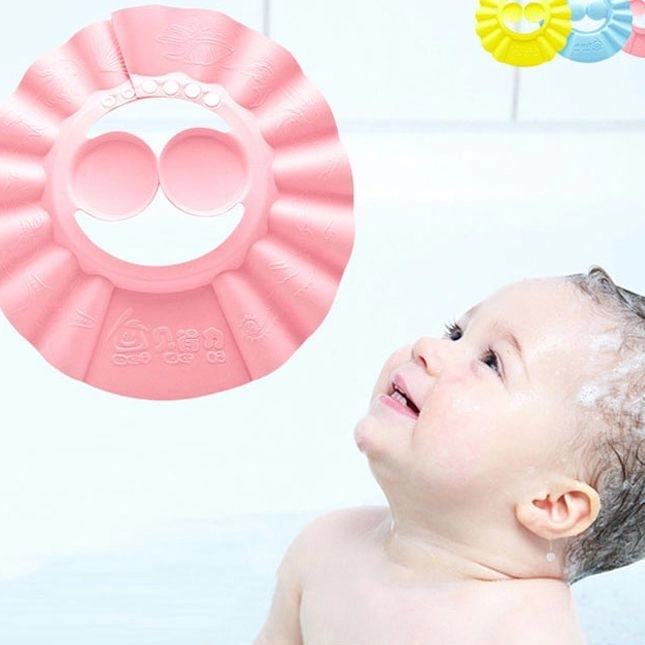 - Badehætten beskytter barnets øjne og sikrer et roligt bad uden gråd.