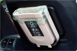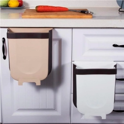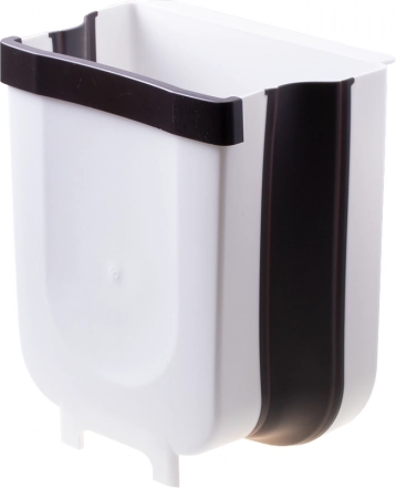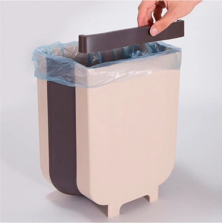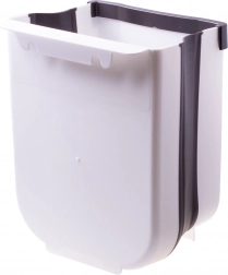 Moderne, kreativ skraldespand til skab med en tykkelse på 2,2 cm. Den kan bruges både i køkkenet, på badeværelset eller i bilen. Meget bekvem at bruge – for at smide affald ud behøver du ikke bøje dig; skub det blot direkte fra bordpladen ned i spanden. Spanden har en kapacitet på 9 liter. Den er fremstillet af plast og silikone af høj kvalitet. Nem at bruge, tryk blot og træk ud. I sammenfoldet tilstand fylder spanden meget lidt.