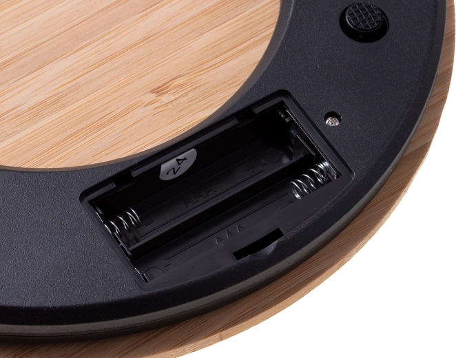 Denne miljøvenlige vægt bringer naturen ind i dit køkken med en glat bambusoverflade kombineret med en robust plastbund for langvarig pålidelighed. Den bruger to AAA-batterier.