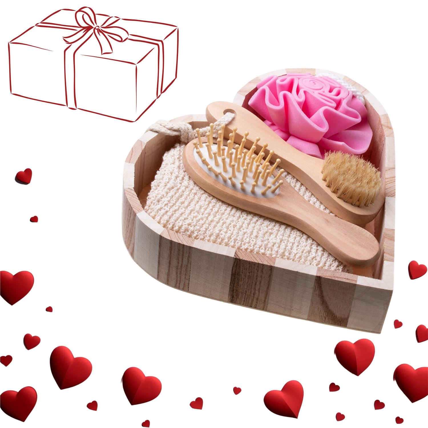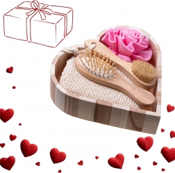 Dette 5-delte spa-sæt i et dekorativt træhjerte giver et komplet kropsplejeritual – fra eksfoliering og massage til skum og rens. Det træinspirerede design virker naturligt og stilfuldt, perfekt som gave og som tilbehør til badeværelset.