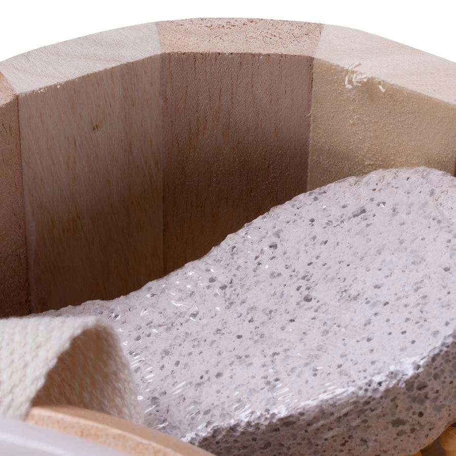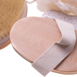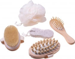 Massagebørste med træknopper, en blid børste og en pimpsten hjælper med at fjerne hård hud og understøtte cirkulationen.
