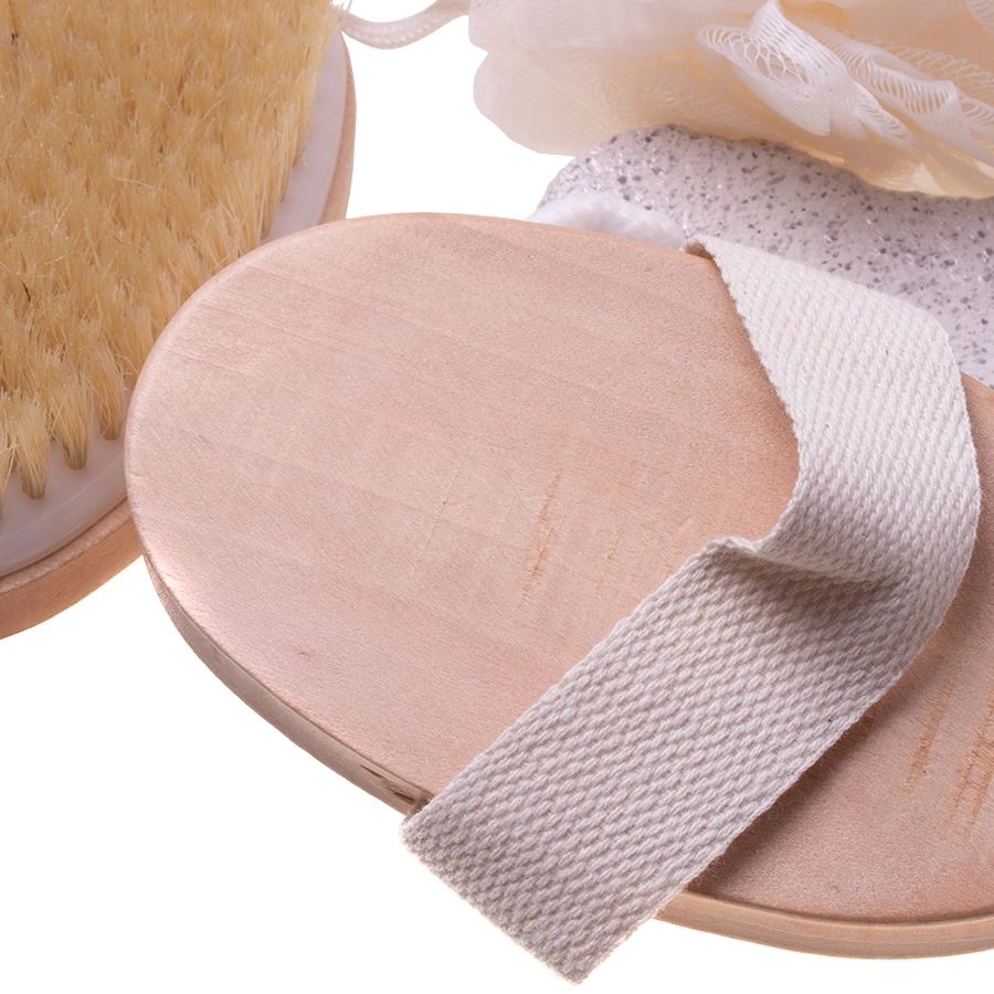 Den praktiske kombination af børster, pimpsten og svamp hjælper med at fjerne døde hudceller, blødgøre hård hud og afslappe spændte muskler. Velegnet til daglig brug og fremmer en glattere, sundere udseende hud.