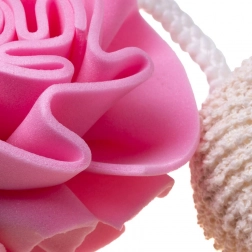 Den lyserøde badesvamp skaber et rigt skum, renser blidt og hjælper med at udglatte huden uden irritation – ideel til det daglige brusebad.