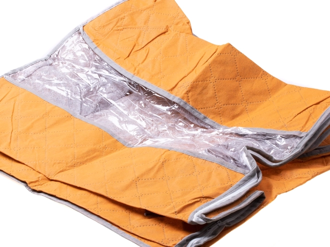 Det praktiske og kompakte orange betræk til opbevaringsboks er den ideelle løsning til opbevaring af sæsonbetonet tøj, tæpper, puder og sengetøj. Dette betræk beskytter mod fugt, støv, møl og snavs og gør samtidig opbevaring i skab eller under sengen nem og bekvem.