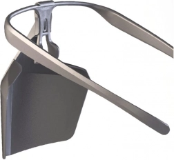 Masken i brilleform giver en beskyttende barriere mod bakterier og vira. Den er elegant, hæmmer ikke vejrtrækningen og dækker ikke øjnene. Konstruktionen minder om kasketters skygger.