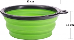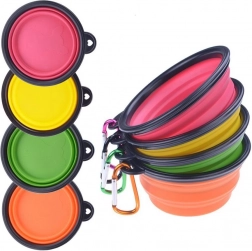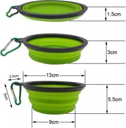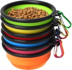 Den sammenklappelige silikone-rejseskål er perfekt til aktive mennesker, der rejser med hunde. Den er lavet af silikone af høj kvalitet, der tåler varme. I sammenklappet tilstand fylder skålen meget lidt. Skålen leveres med en karabinhage, så du kan fastgøre den til et bæltestrop eller en rygsæk.