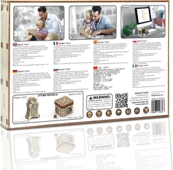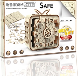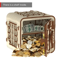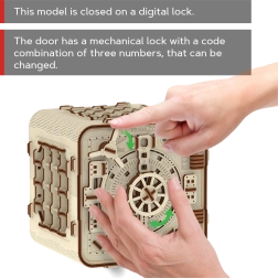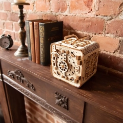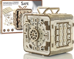3D puslespil boksen fra Wooden City er en ideel gave til elskere af gåder og smukt design. Denne funktionelle model efterligner mekanismen i en bankboks med en trecifret kombination, som kan ændres når som helst. Boksen har også en hemmelig funktion, der hjælper dig, hvis du glemmer koden. Udtrykket forstærkes af et håndtag for nem transport og hyldeplads indeni.