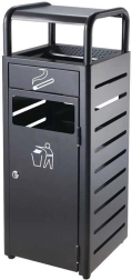Elegant affaldsspand med integreret askebæger i kvalitets rustfrit stål, ideel til indgange, restauranter, hoteller, supermarkeder, kontorer og tankstationer. Den tilbyder praktisk øverste afsætningsplads til cigaretskodder, robust udførelse og et moderne look, der passer perfekt i både offentlige og kommercielle miljøer.